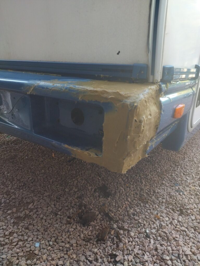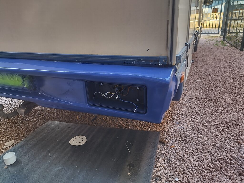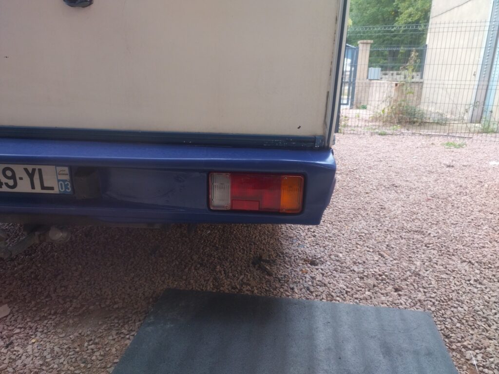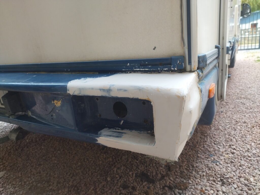 Sur ce camping-car, le pare-chocs arrière était fissuré et, malheureusement, la pièce d’origine n’existe plus. Plutôt que de laisser le véhicule avec un élément cassé, une réparation complète a été réalisée : remise en forme, consolidation et finition soignée pour redonner au pare-chocs toute son esthétique et sa solidité.